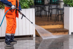 Pressure washing uses high-pressure water to remove dirt, grime, and other debris from hard surfaces like driveways & sidewalks. In contrast, soft washing employs lower pressure and special solutions to gently clean more delicate surfaces such as roofs and house siding. This method is safer for materials that could get damaged by high pressure.